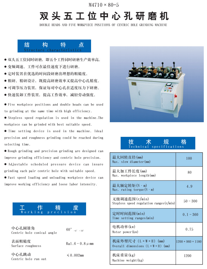相關標簽:雙頭五工位氣控中心孔研磨機,M4710A×80-5雙頭五工位氣控中心孔研磨機,立式中心孔磨床